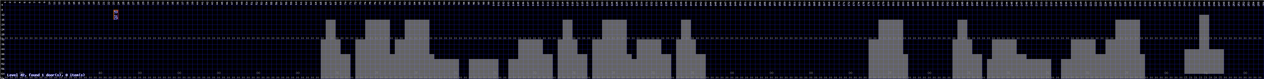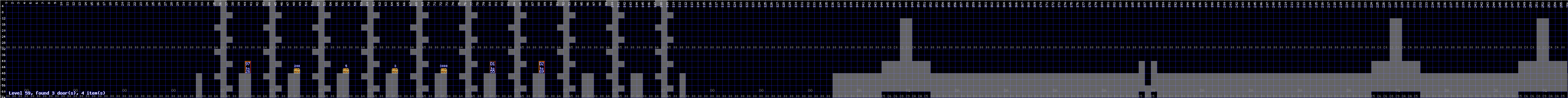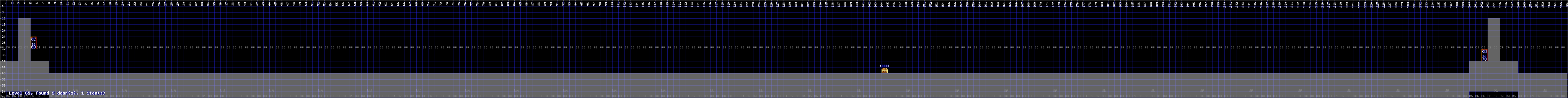 It has four chests of little value and three doors: the left door, from Zone 50, leads to the right side of Zone 26. The middle door is invisible and leads to Zone 55. The rightmost door leads to Zone 69.